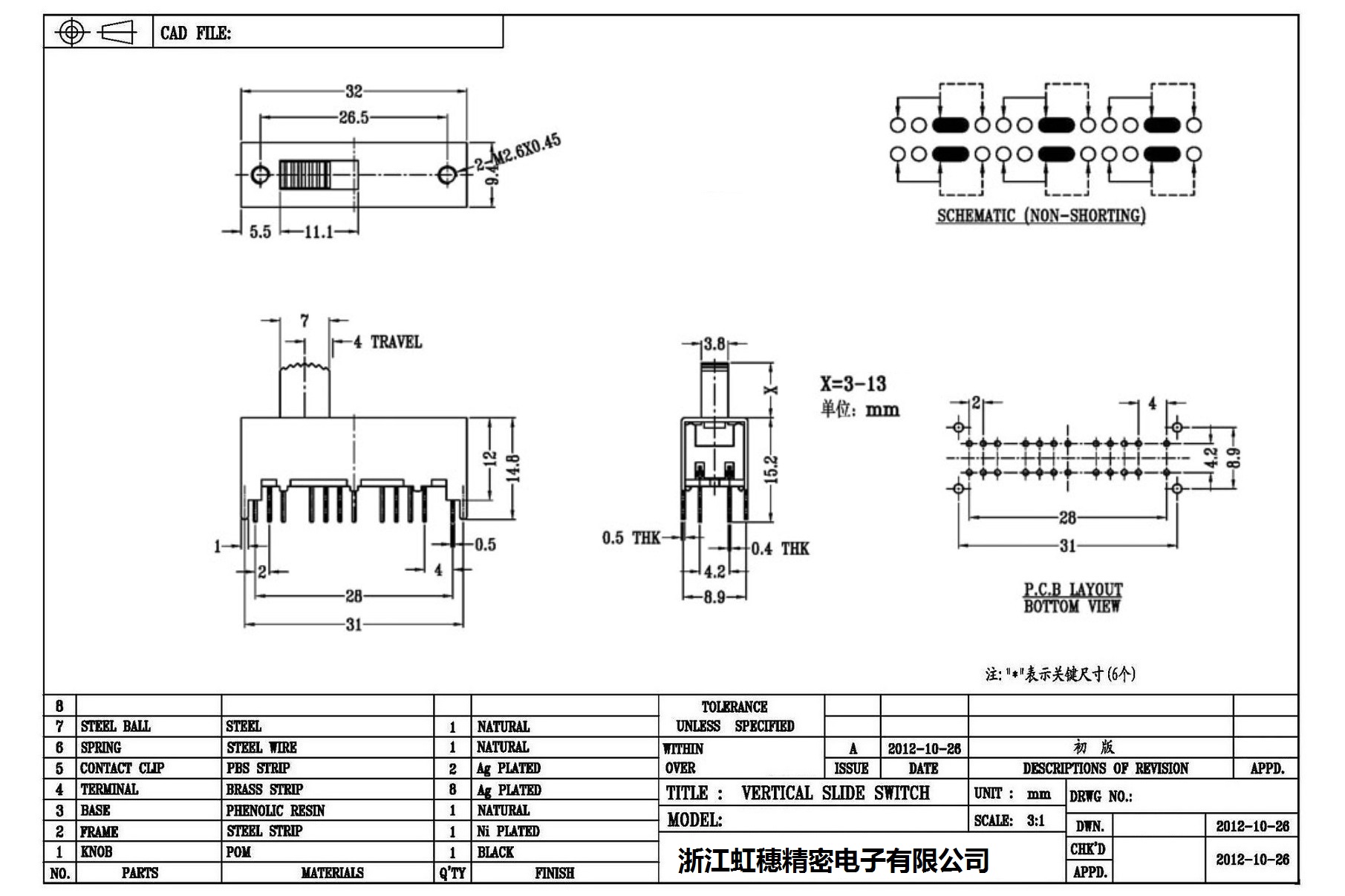 Verticaltoggle switch side dial/ Vertical slide switch technical indicators