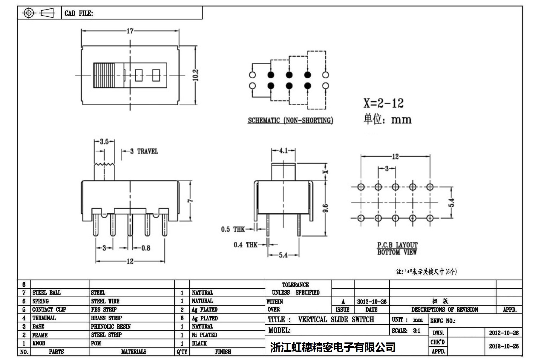 Verticaltoggle switch side dial/ Vertical slide switch technical indicators