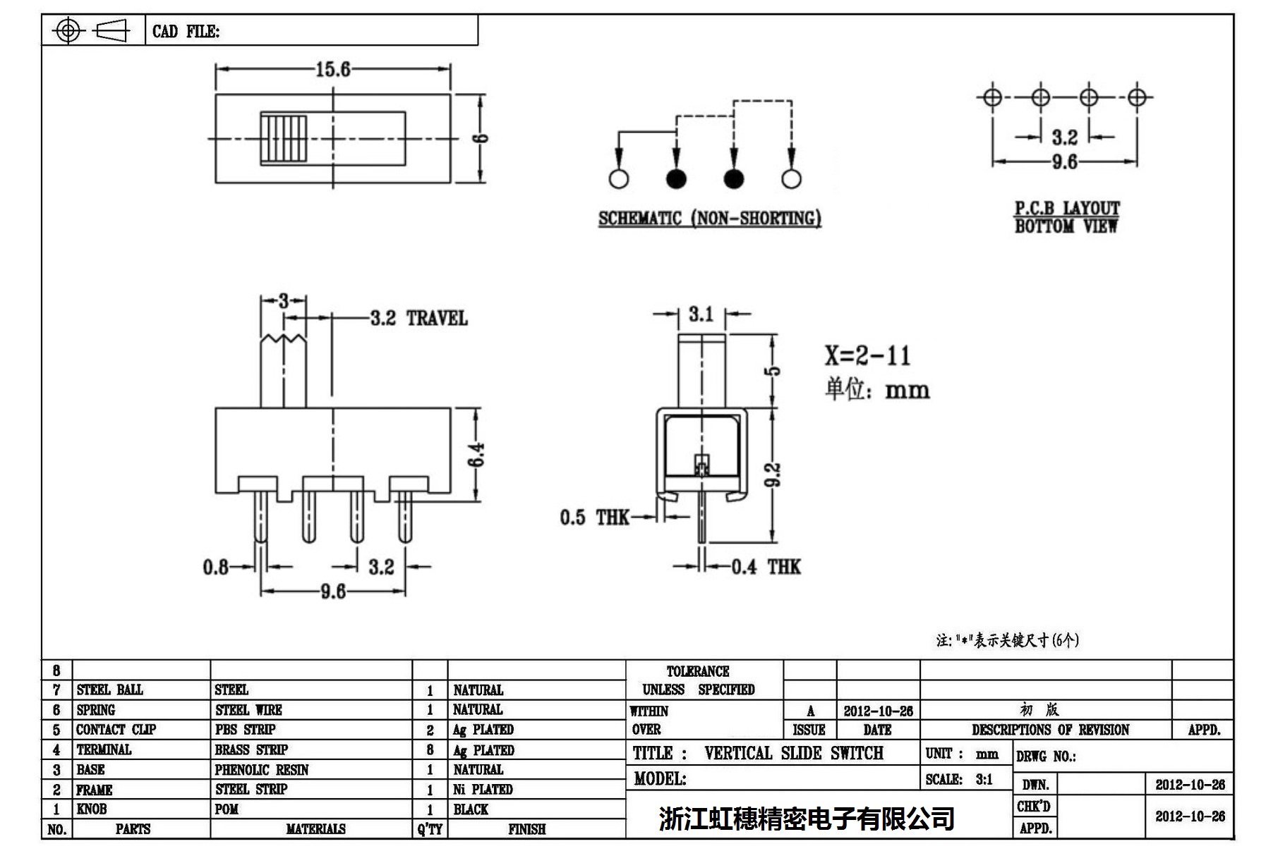 Verticaltoggle switch side dial/ Vertical slide switch technical indicators