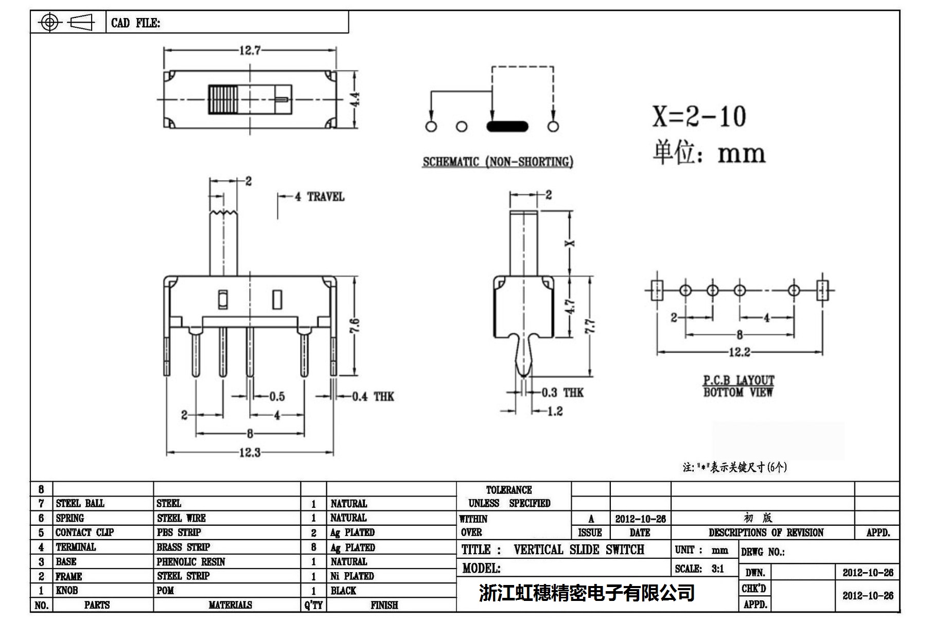 Verticaltoggle switch side dial/ Vertical slide switch technical indicators