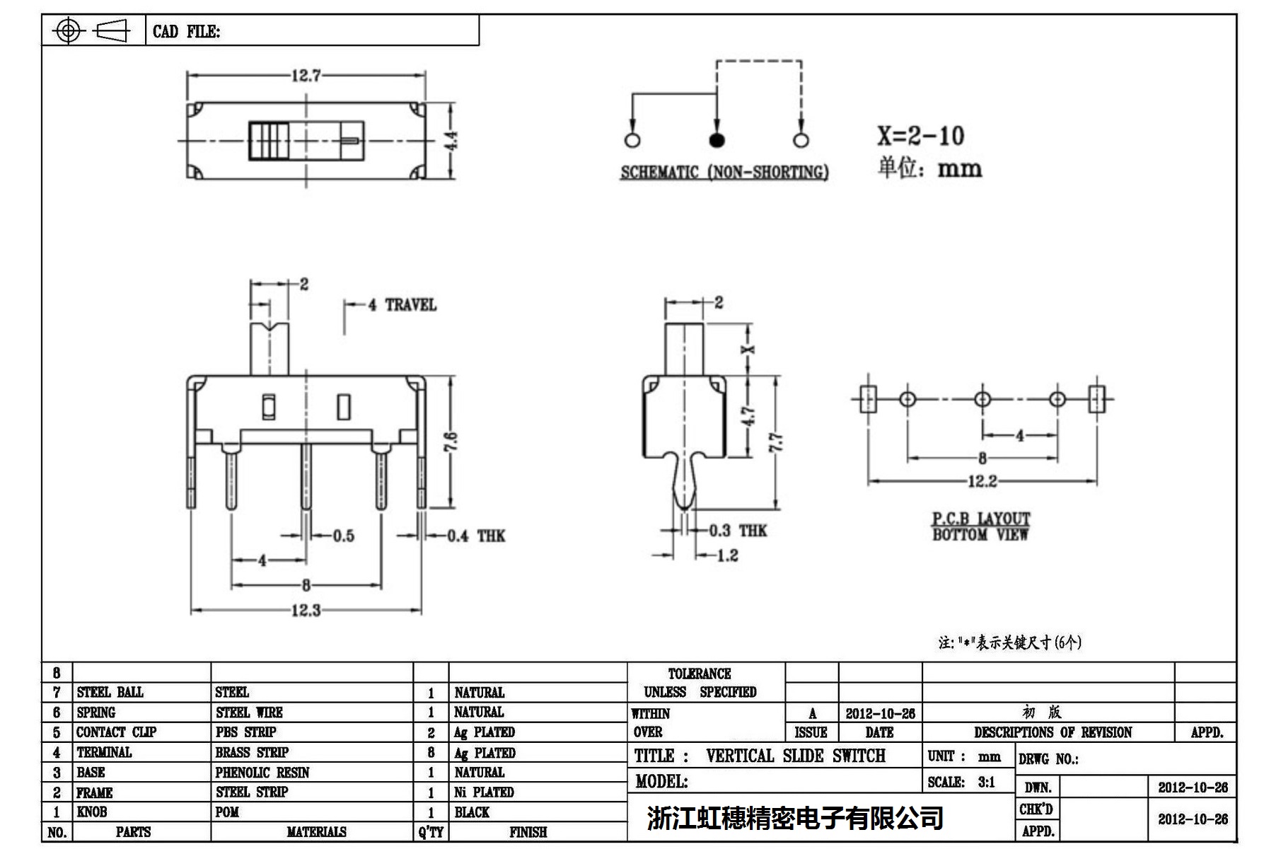 Verticaltoggle switch side dial/ Vertical slide switch technical indicators
