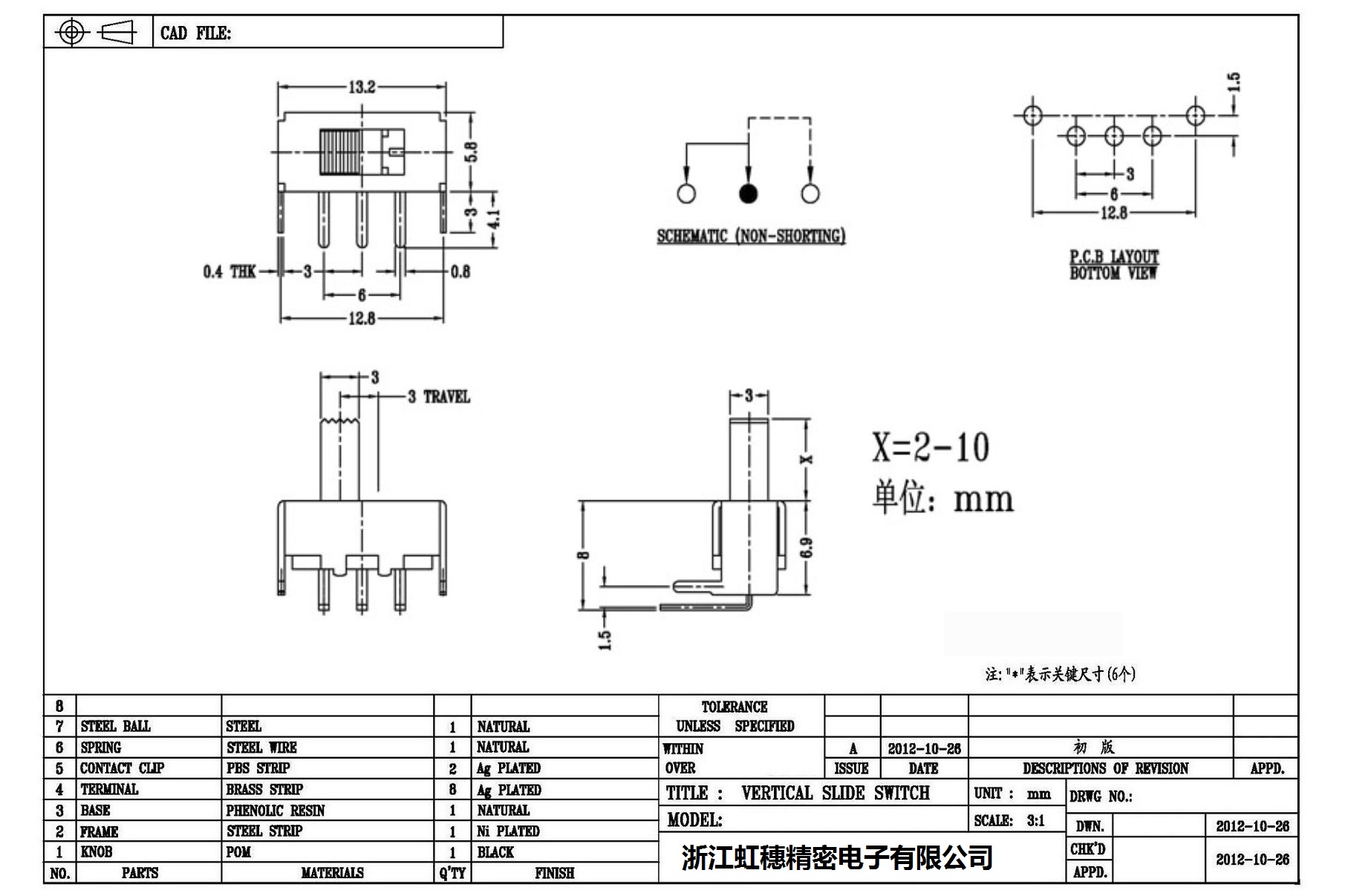 Verticaltoggle switch side dial/ Vertical slide switch technical indicators