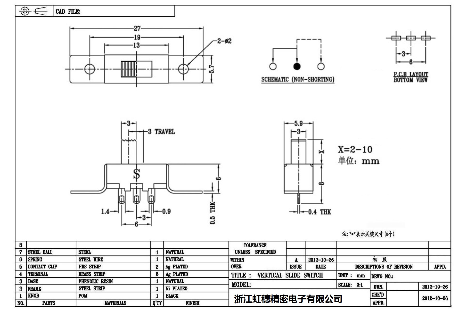 Verticaltoggle switch side dial/ Vertical slide switch technical indicators