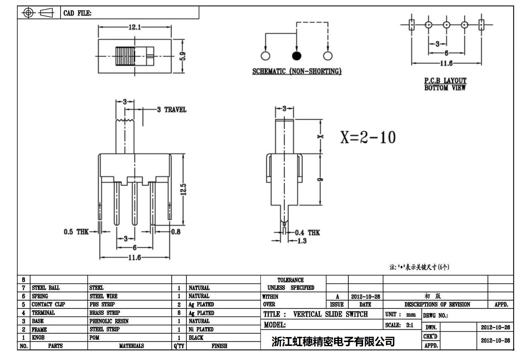 Verticaltoggle switch side dial/ Vertical slide switch technical indicators