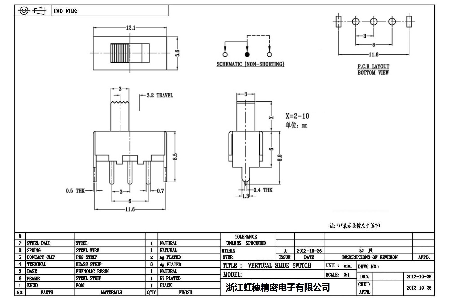 Verticaltoggle switch side dial/ Vertical slide switch technical indicators
