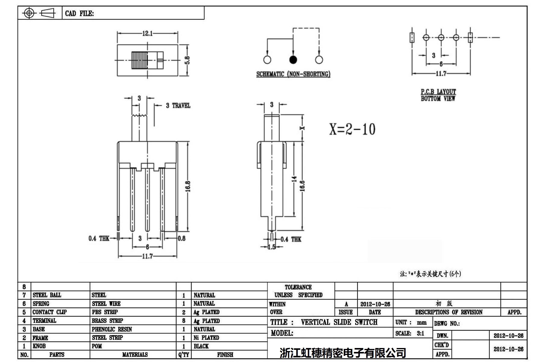 Verticaltoggle switch side dial/ Vertical slide switch technical indicators
