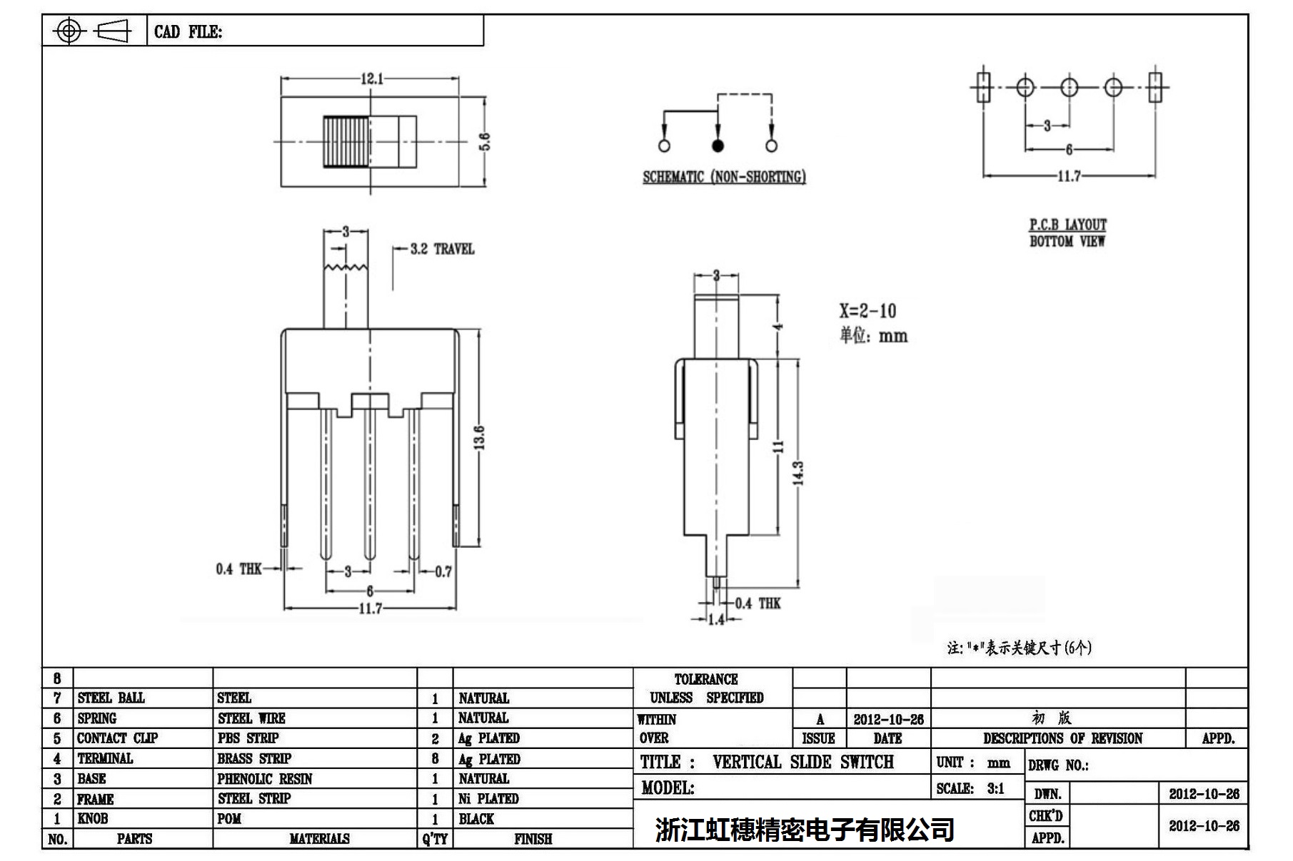 Verticaltoggle switch side dial/ Vertical slide switch technical indicators