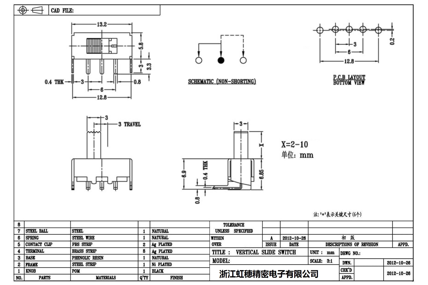 Verticaltoggle switch side dial/ Vertical slide switch technical indicators