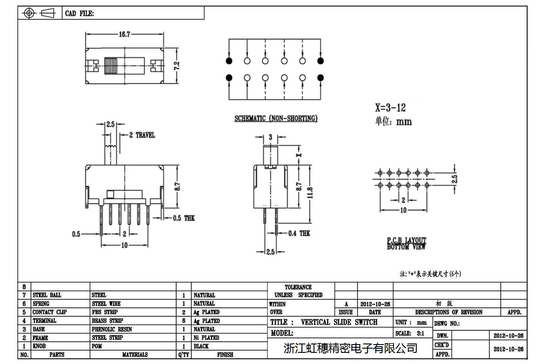 Verticaltoggle switch side dial/ Vertical slide switch technical indicators