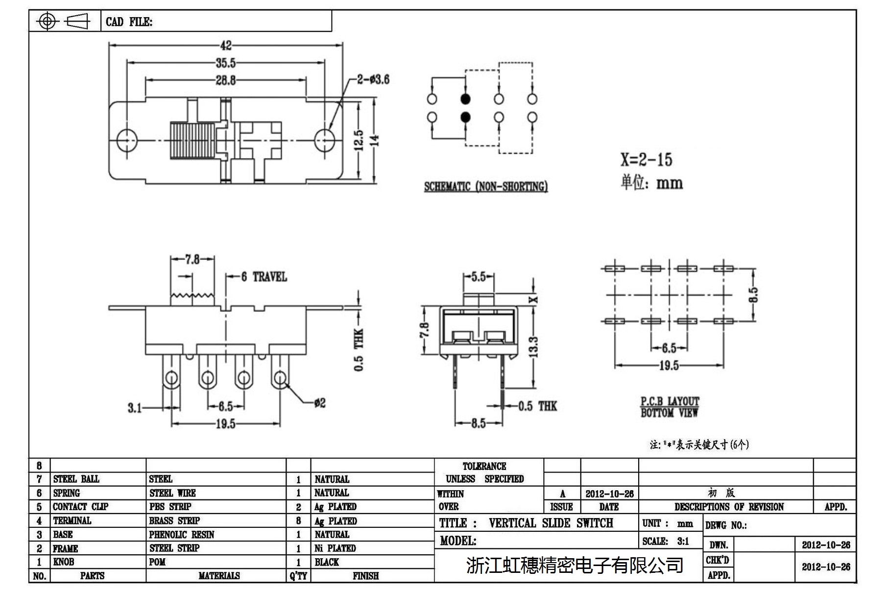 Verticaltoggle switch side dial/ Vertical slide switch technical indicators