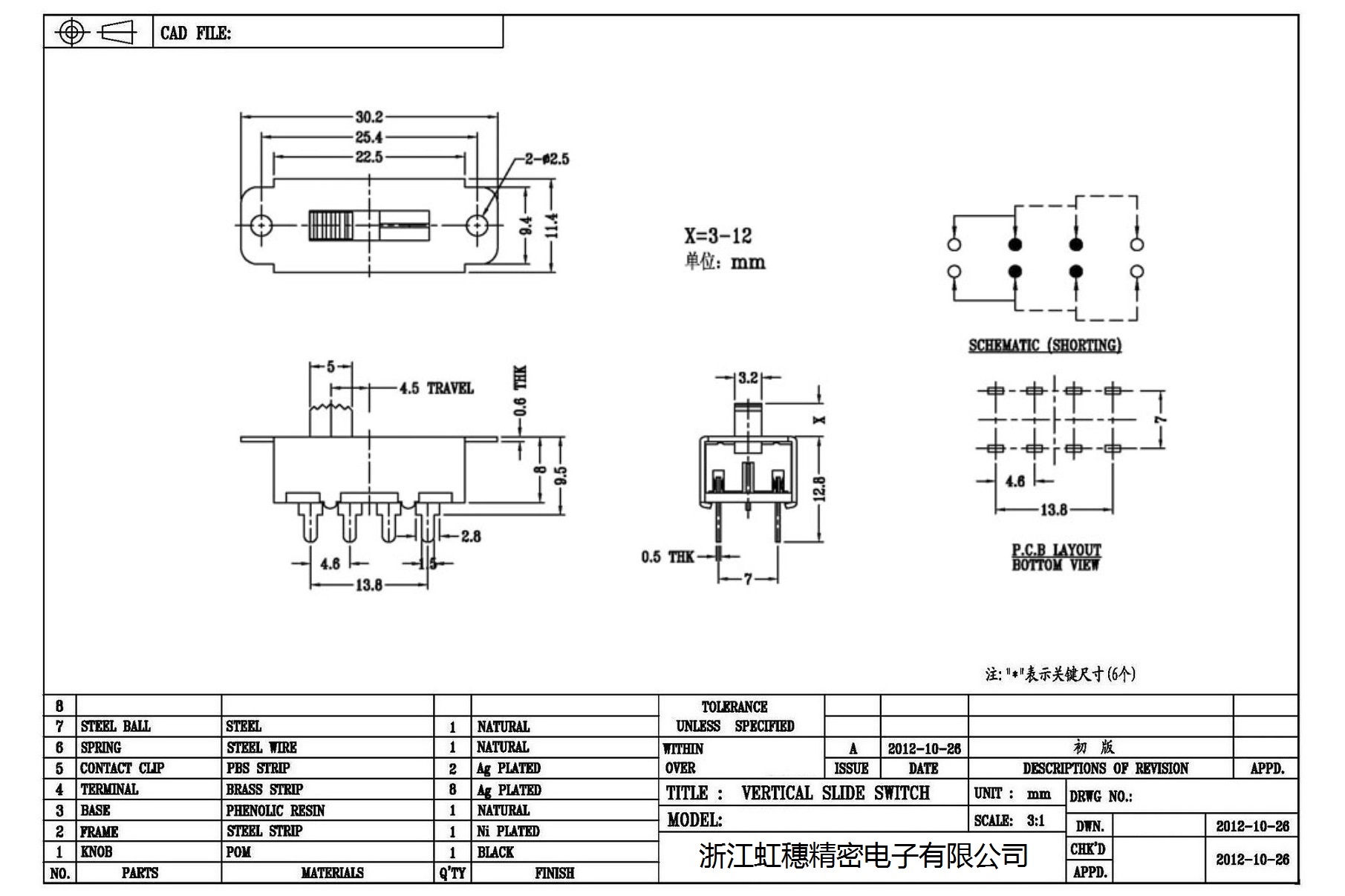 Verticaltoggle switch side dial/ Vertical slide switch technical indicators