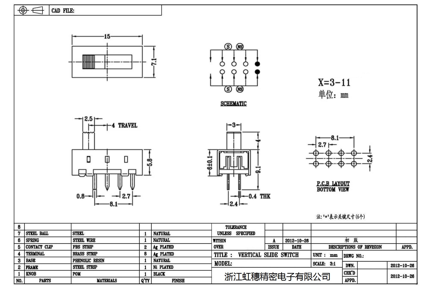 Verticaltoggle switch side dial/ Vertical slide switch technical indicators