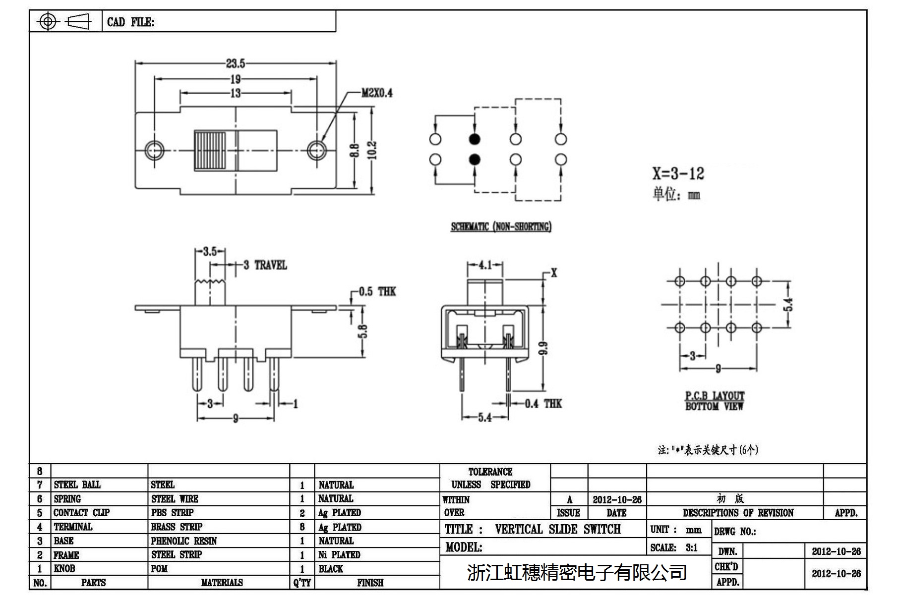 Verticaltoggle switch side dial/ Vertical slide switch technical indicators