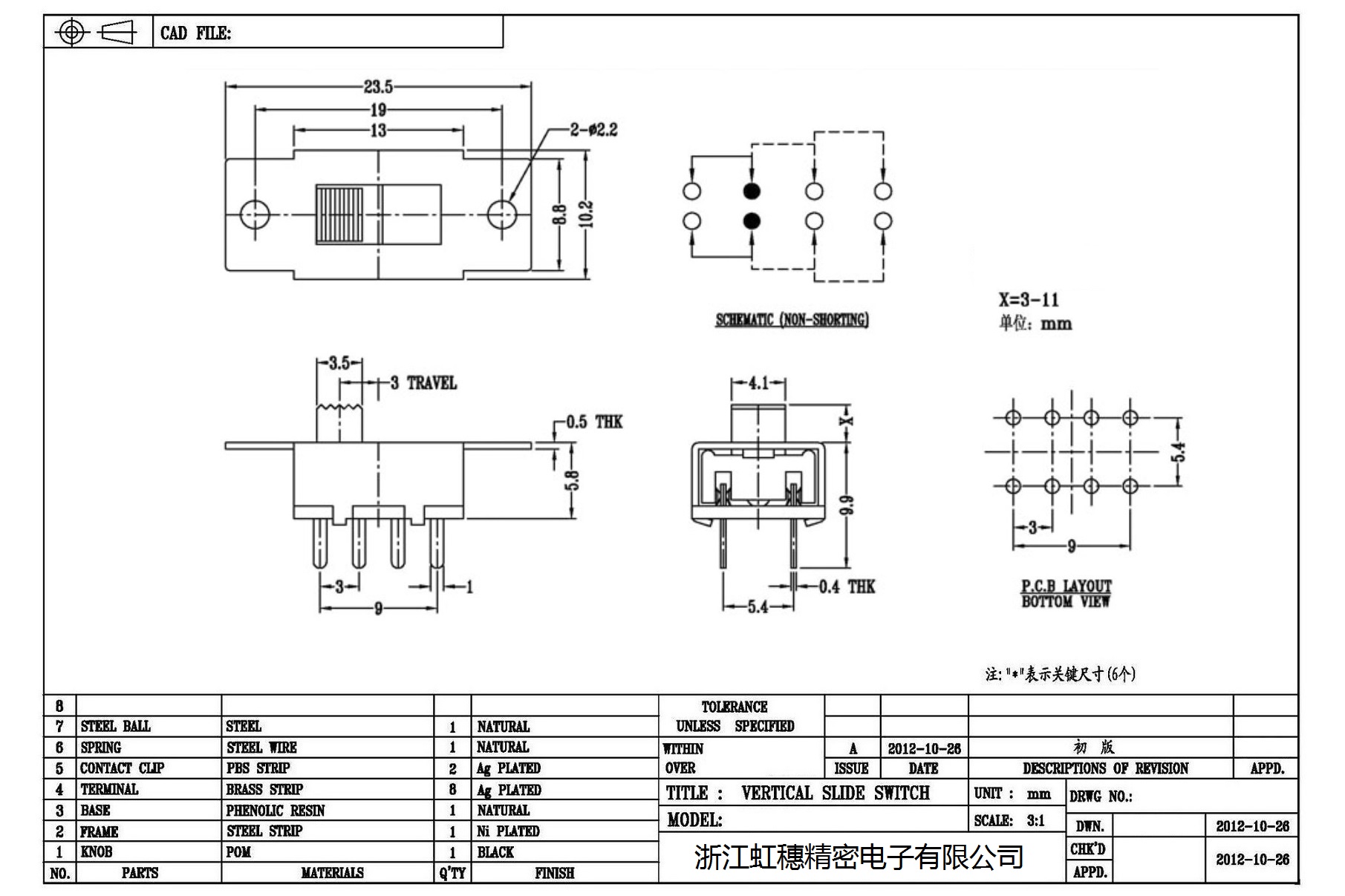 Verticaltoggle switch side dial/ Vertical slide switch technical indicators