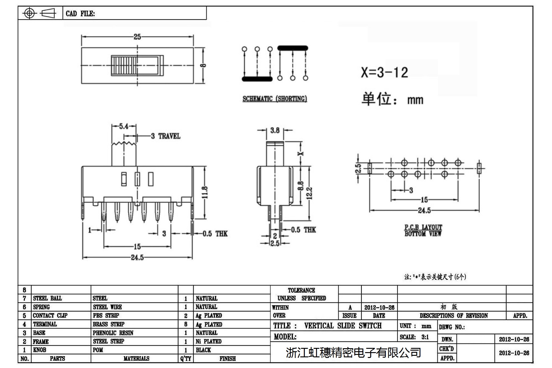 Verticaltoggle switch side dial/ Vertical slide switch technical indicators