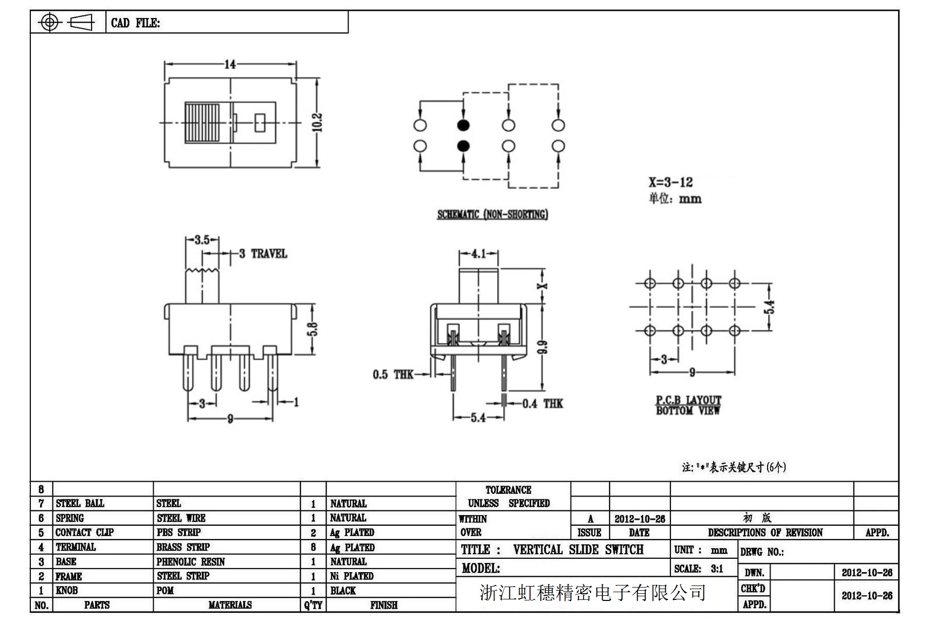 Verticaltoggle switch side dial/ Vertical slide switch technical indicators