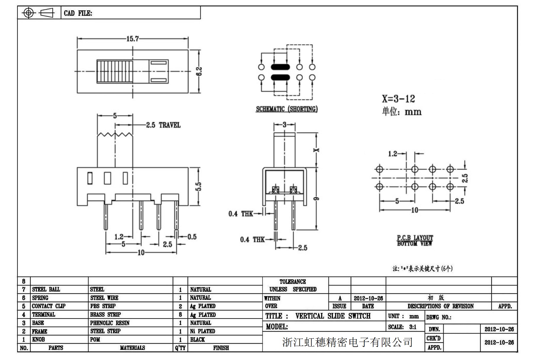 Verticaltoggle switch side dial/ Vertical slide switch technical indicators