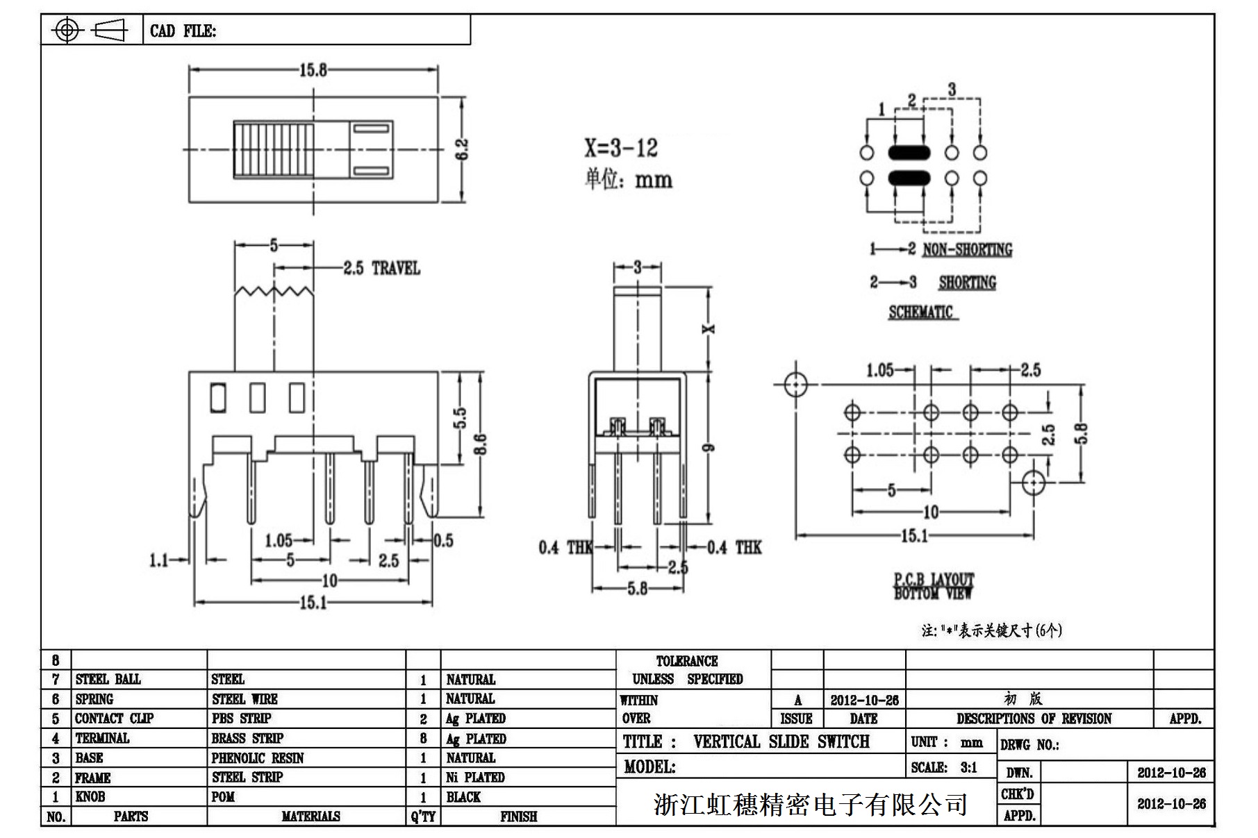 Verticaltoggle switch side dial/ Vertical slide switch technical indicators