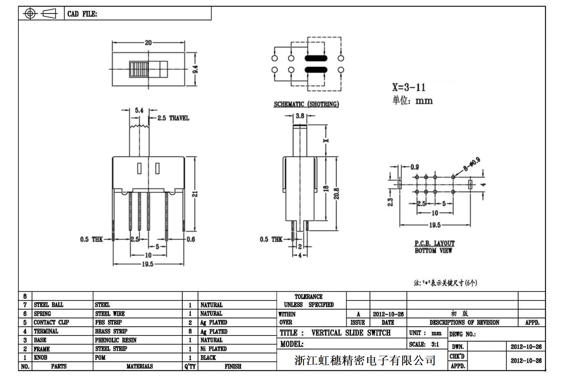 Verticaltoggle switch side dial/ Vertical slide switch technical indicators