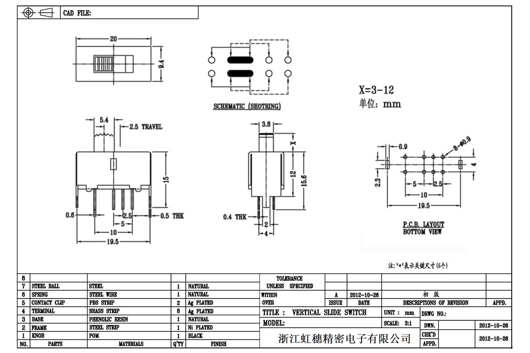Verticaltoggle switch side dial/ Vertical slide switch technical indicators