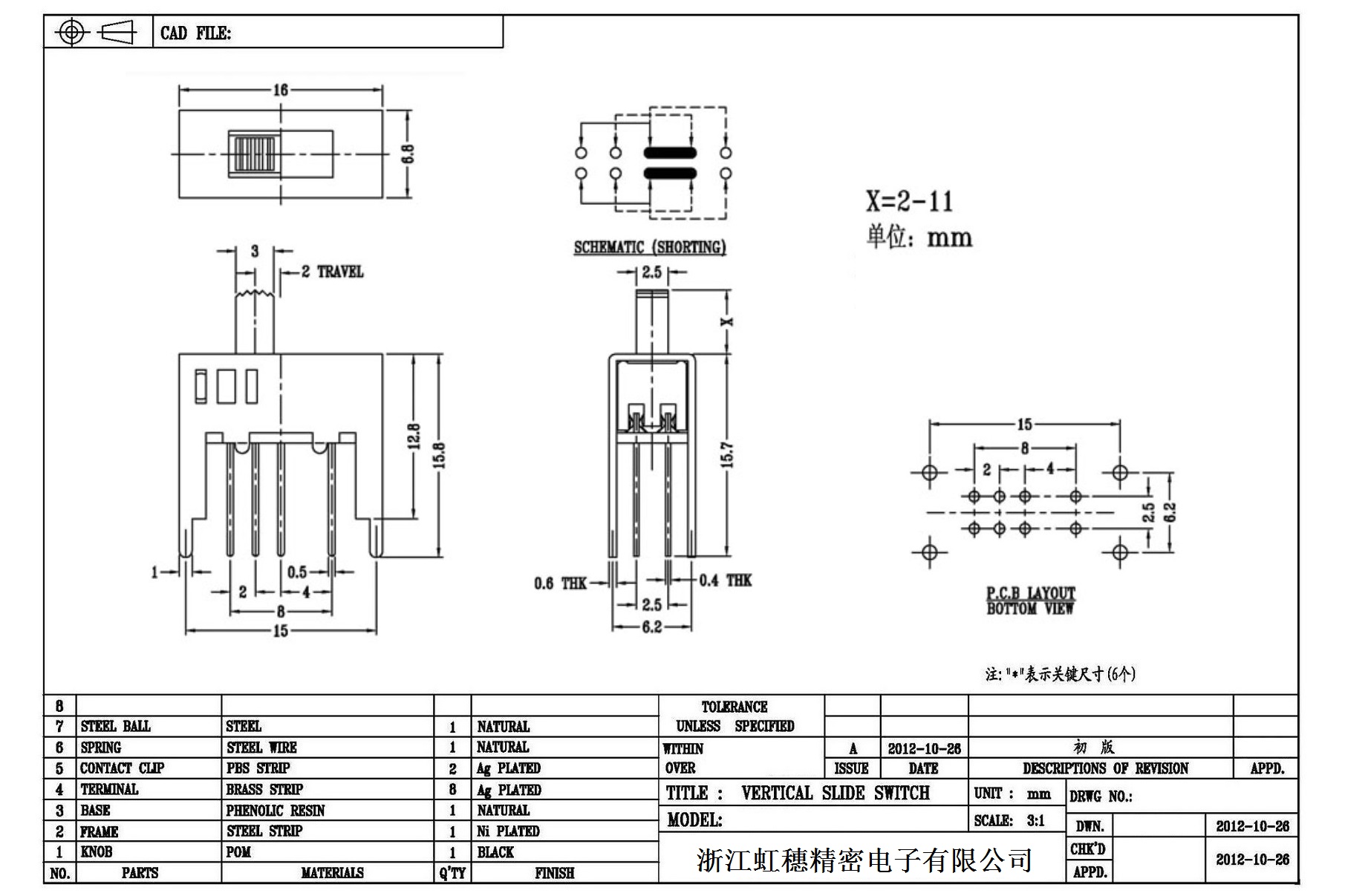 Verticaltoggle switch side dial/ Vertical slide switch technical indicators