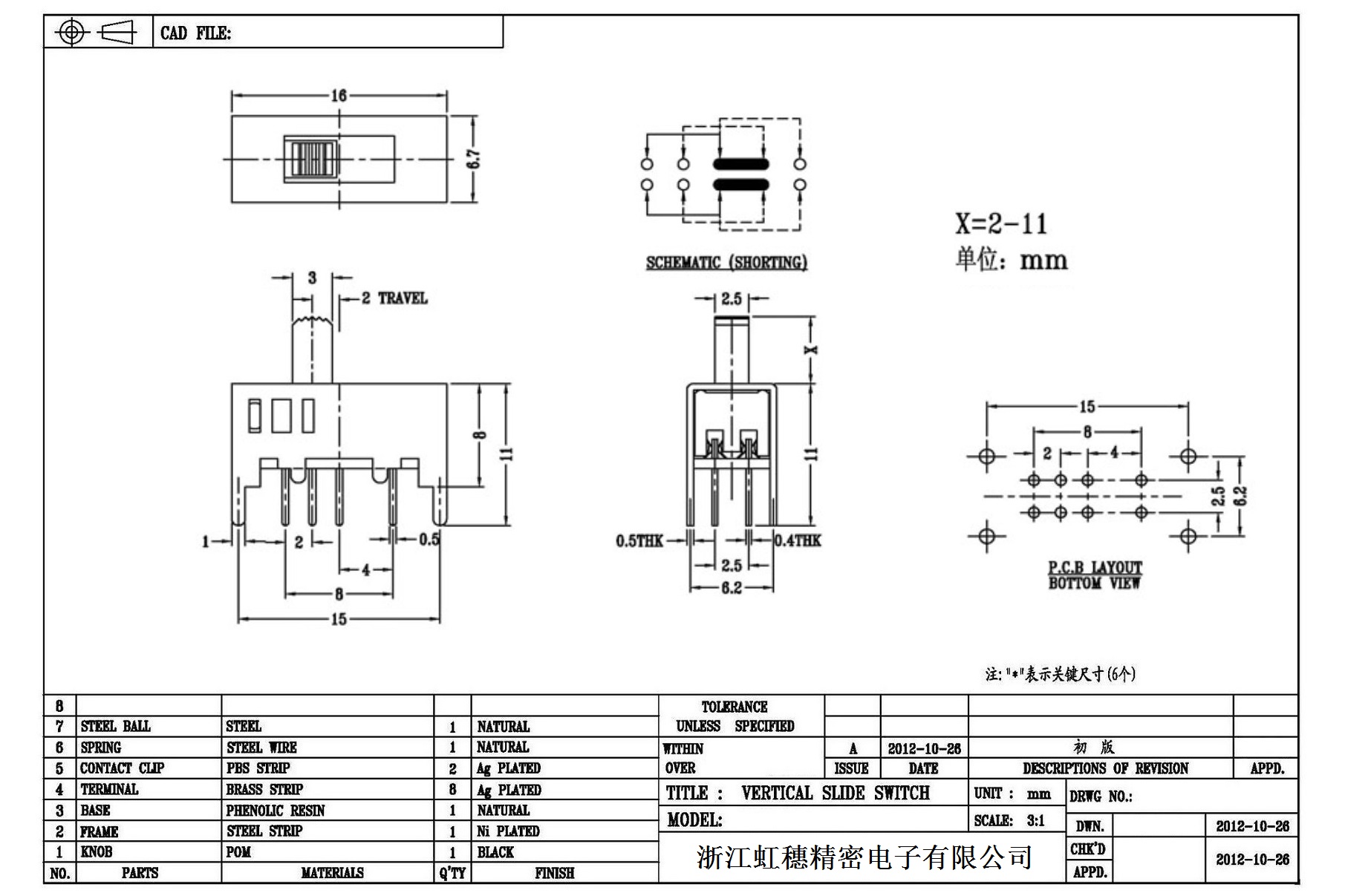 Verticaltoggle switch side dial/ Vertical slide switch technical indicators