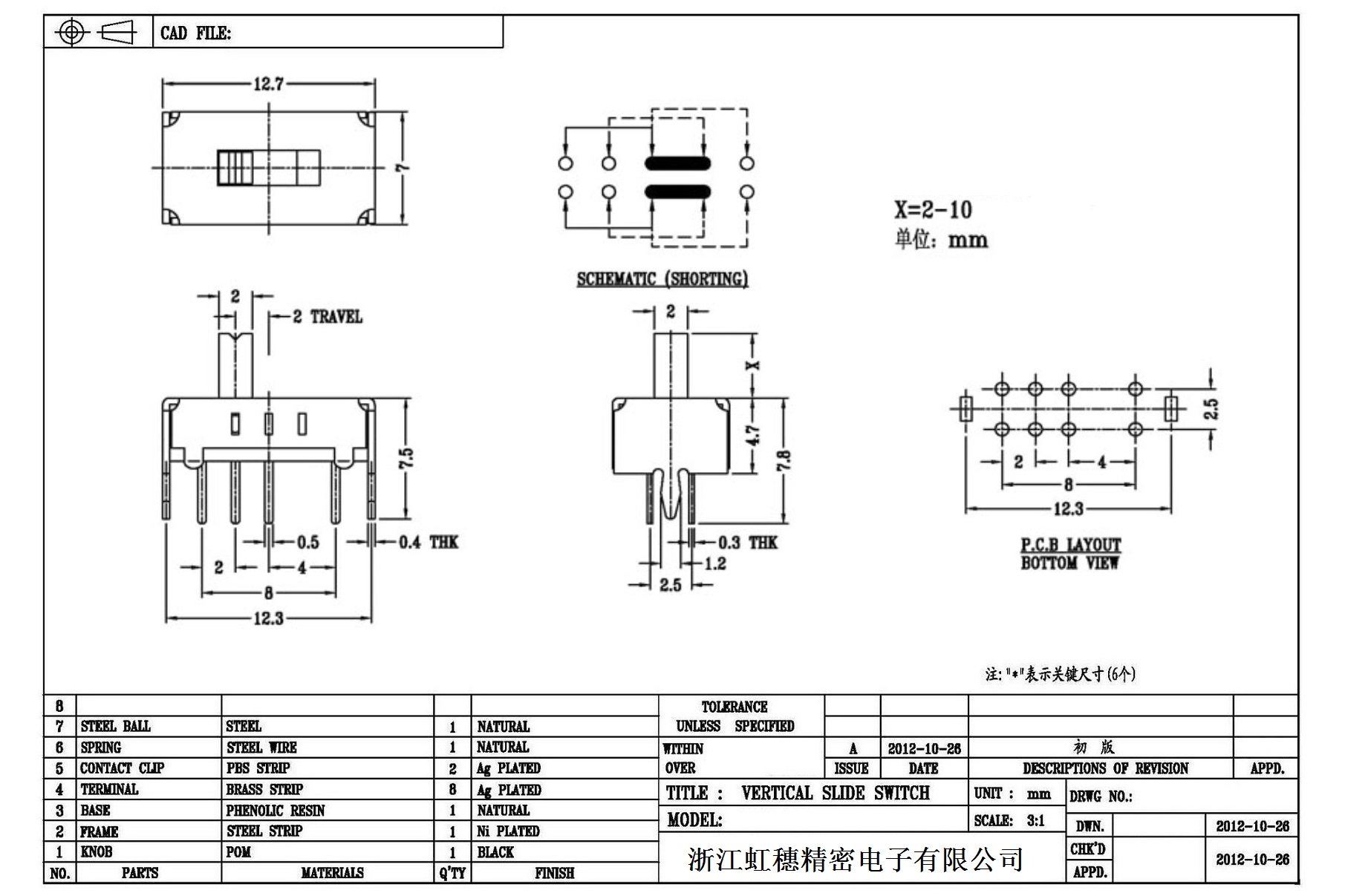Verticaltoggle switch side dial/ Vertical slide switch technical indicators