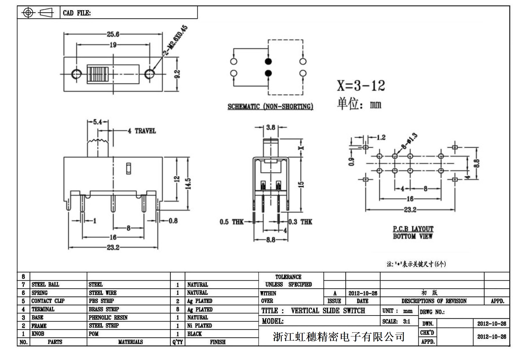 Verticaltoggle switch side dial/ Vertical slide switch technical indicators