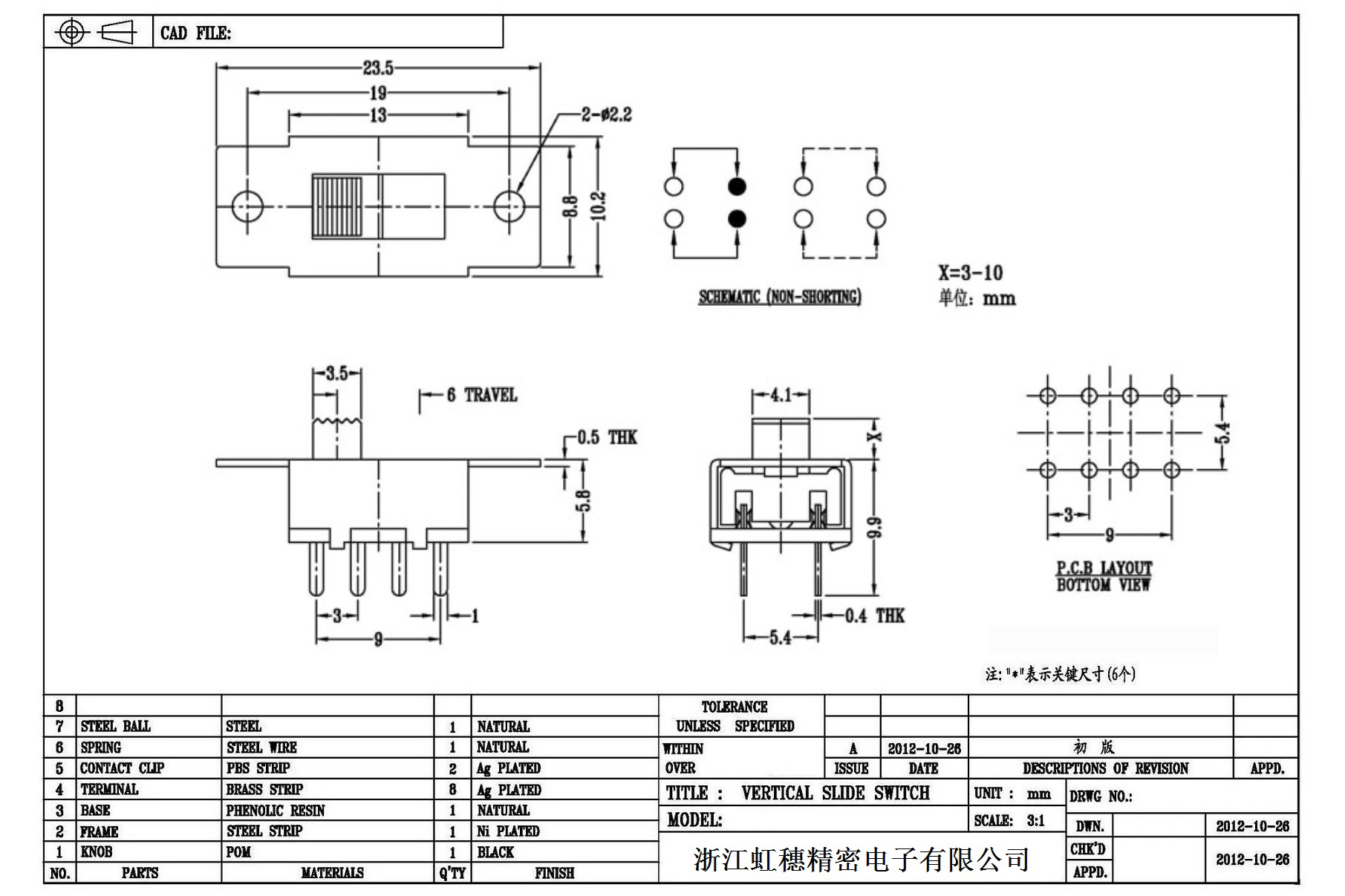 Verticaltoggle switch side dial/ Vertical slide switch technical indicators