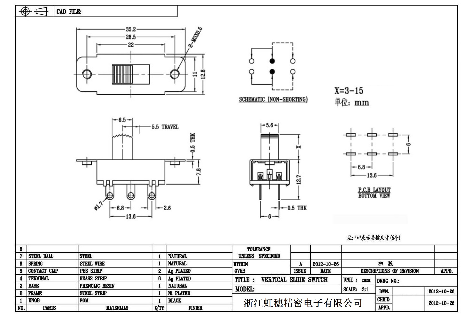 Verticaltoggle switch side dial/ Vertical slide switch technical indicators