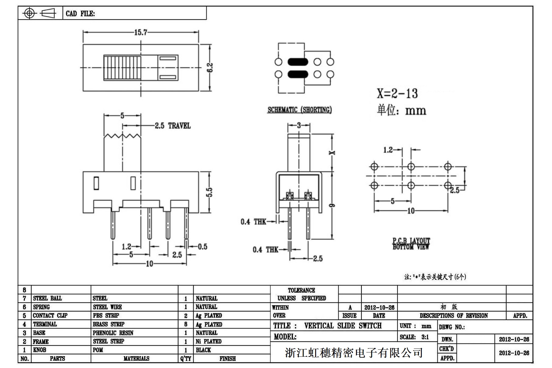 Verticaltoggle switch side dial/ Vertical slide switch technical indicators