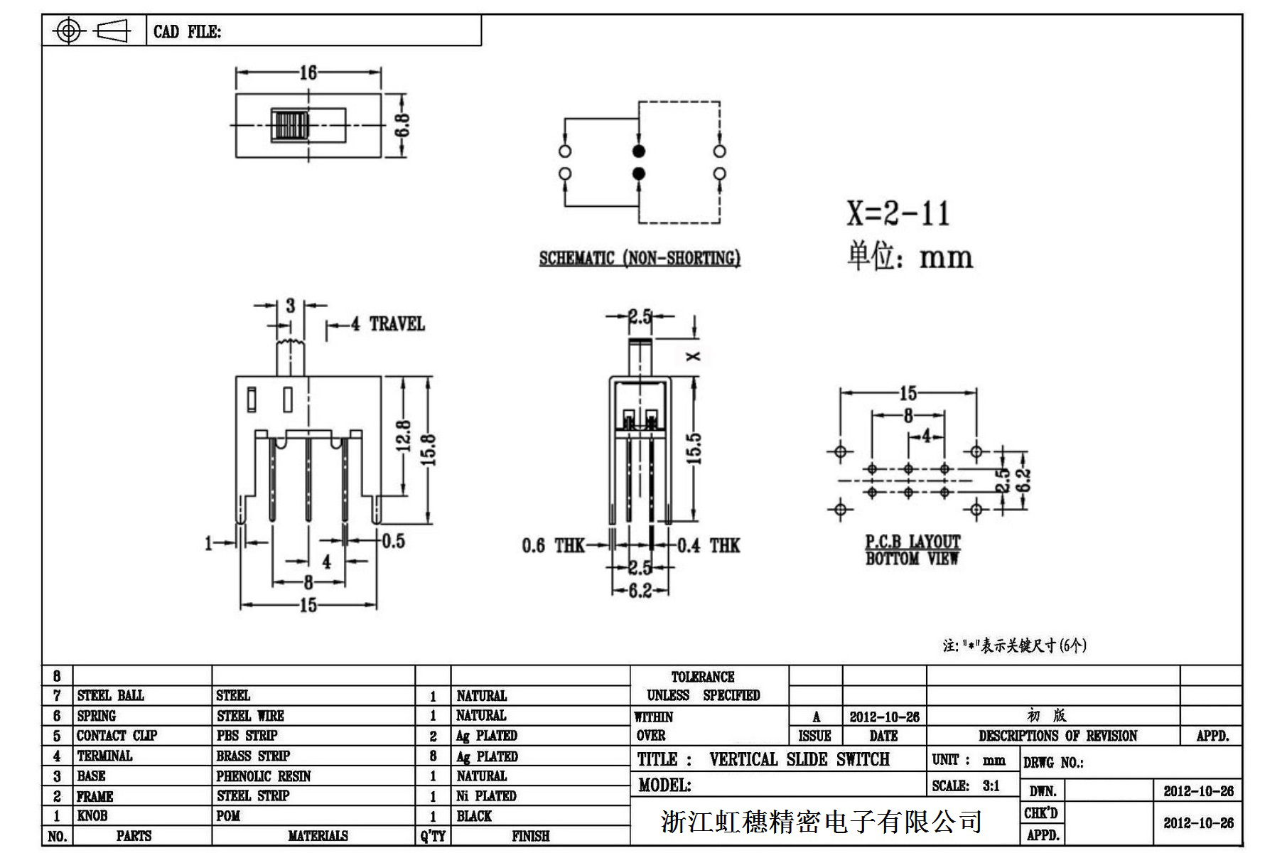 Verticaltoggle switch side dial/ Vertical slide switch technical indicators