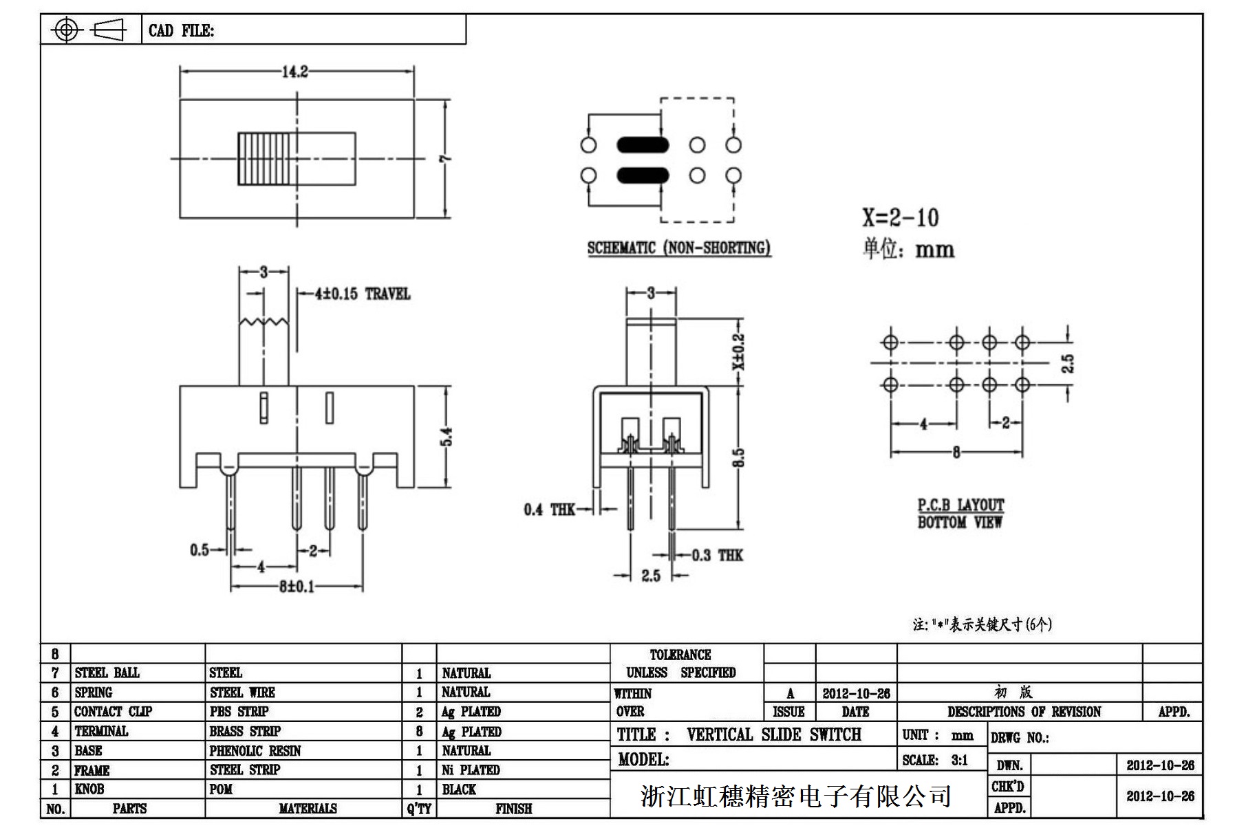 Verticaltoggle switch side dial/ Vertical slide switch technical indicators