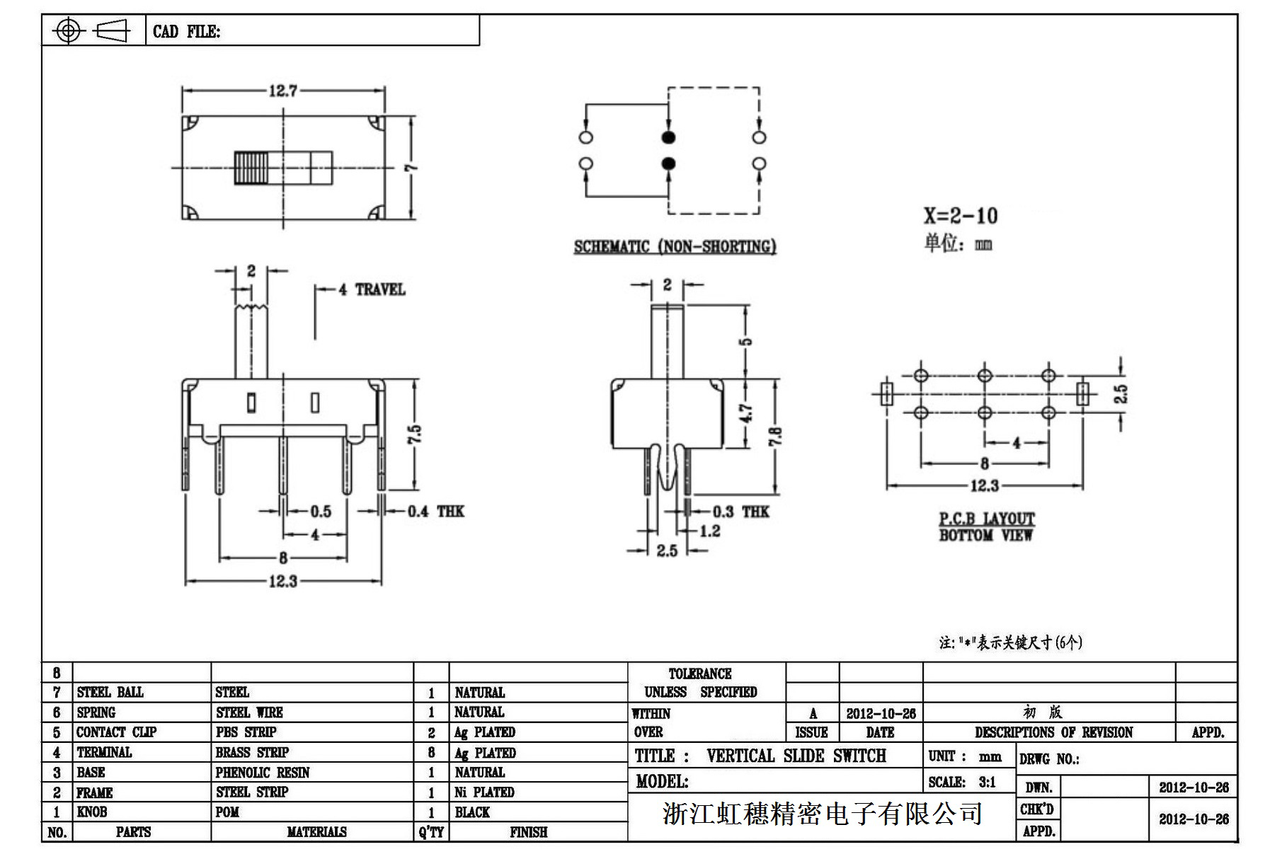 Verticaltoggle switch side dial/ Vertical slide switch technical indicators