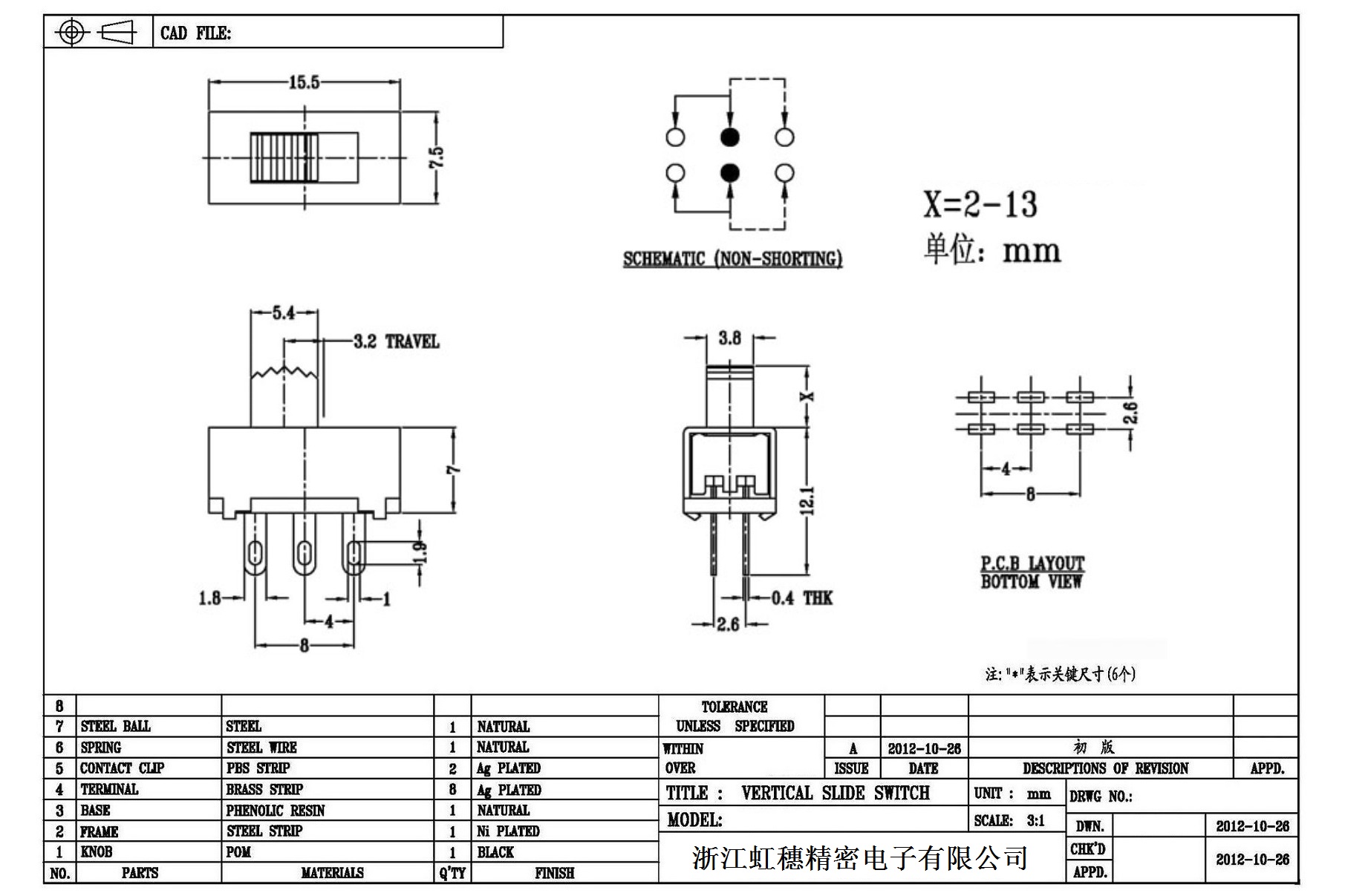 Verticaltoggle switch side dial/ Vertical slide switch technical indicators
