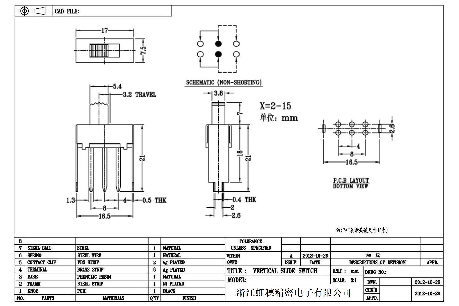 Verticaltoggle switch side dial/ Vertical slide switch technical indicators