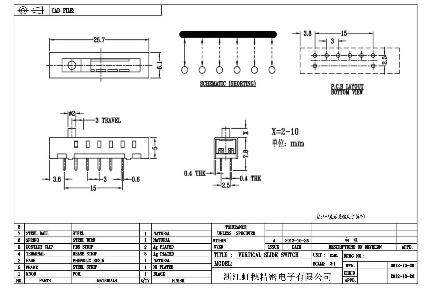 Verticaltoggle switch side dial/ Vertical slide switch technical indicators