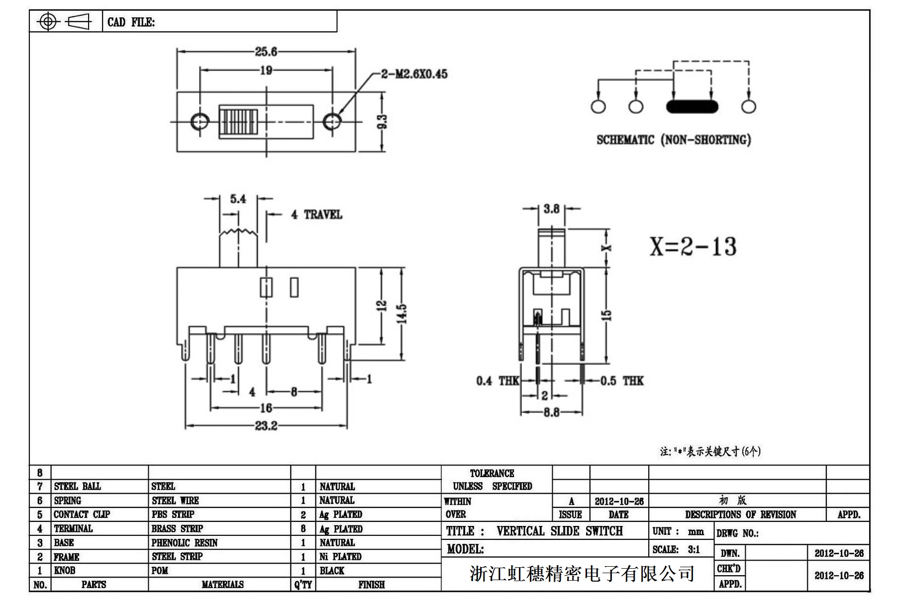 Verticaltoggle switch side dial/ Vertical slide switch technical indicators