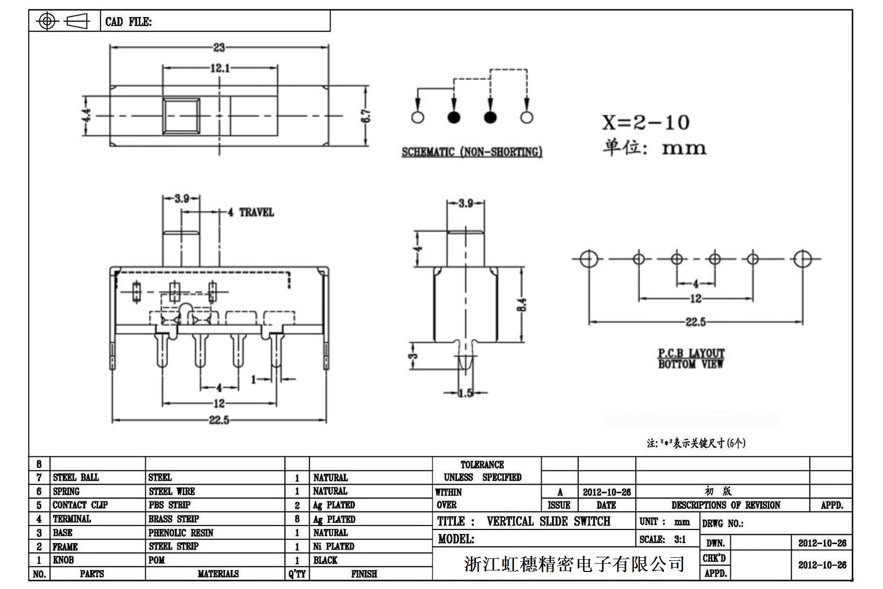 Verticaltoggle switch side dial/ Vertical slide switch technical indicators