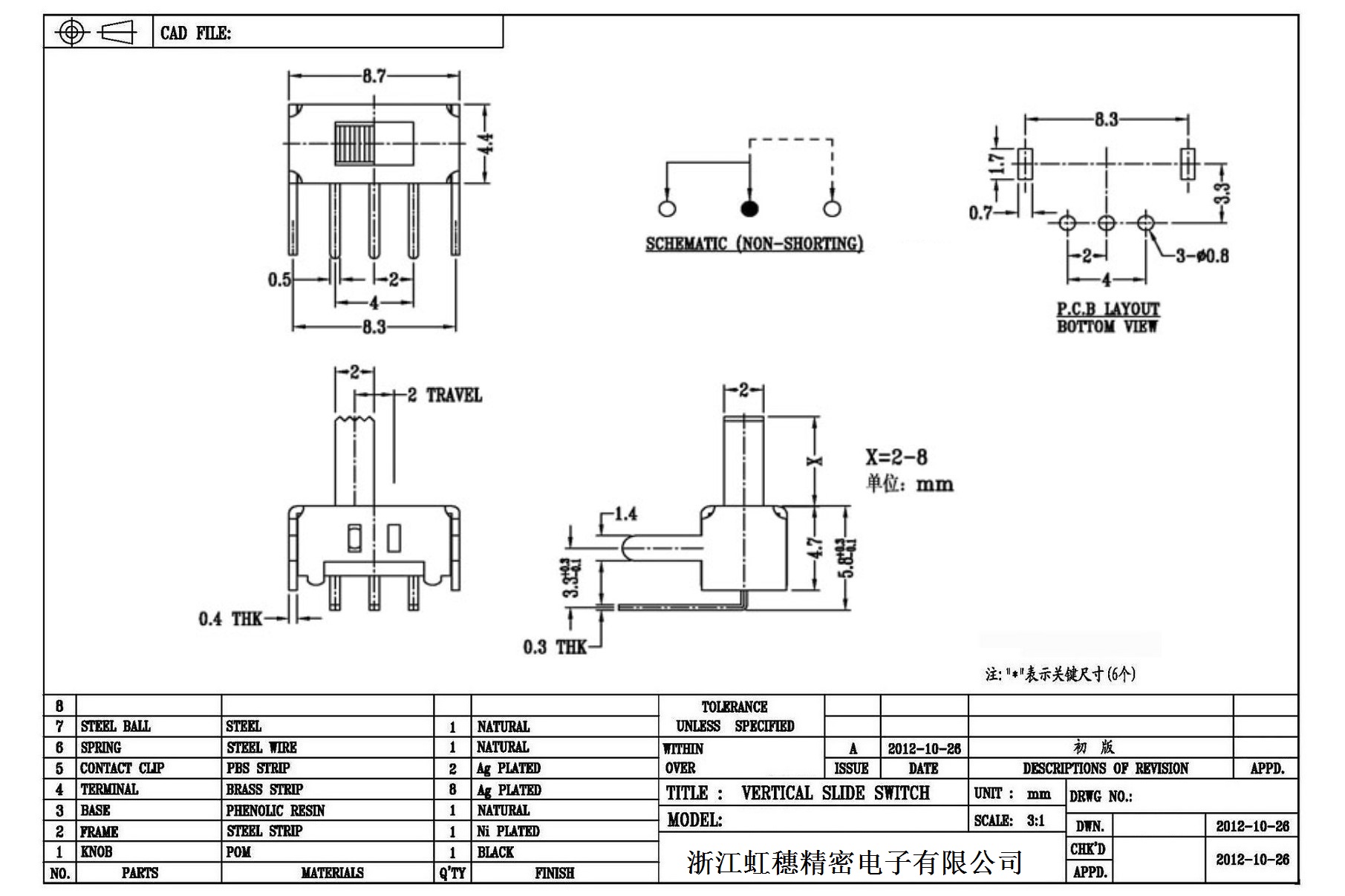 Verticaltoggle switch side dial/ Vertical slide switch technical indicators