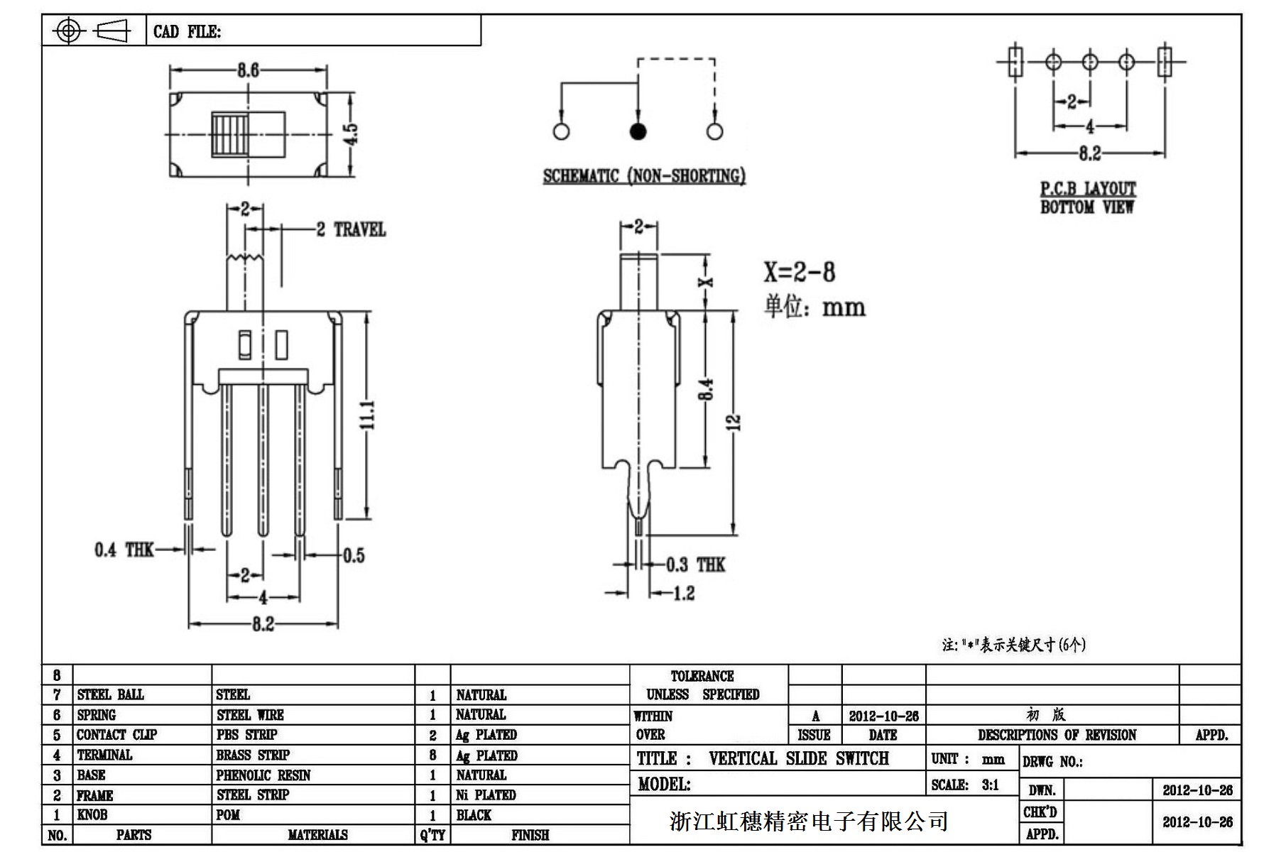 Verticaltoggle switch side dial/ Vertical slide switch technical indicators