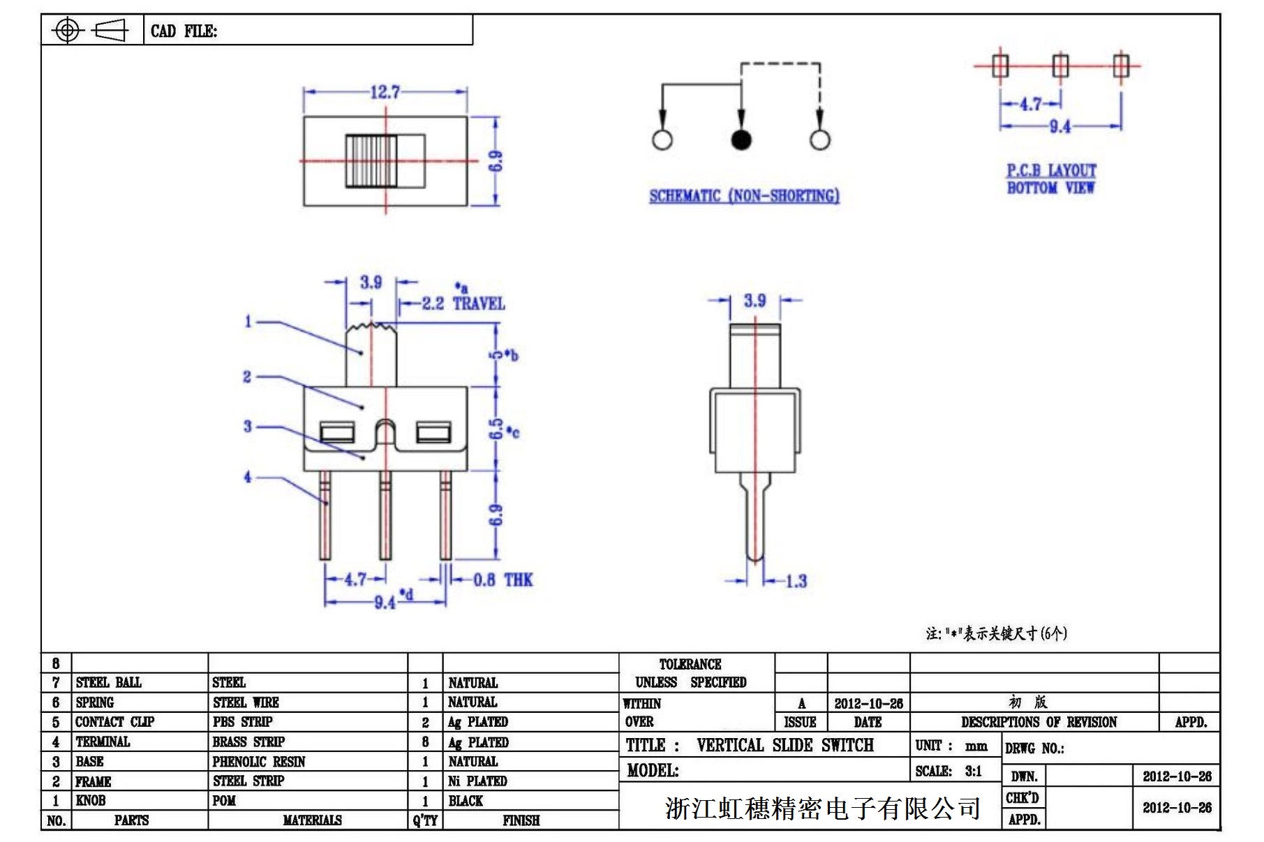 Verticaltoggle switch side dial/ Vertical slide switch technical indicators