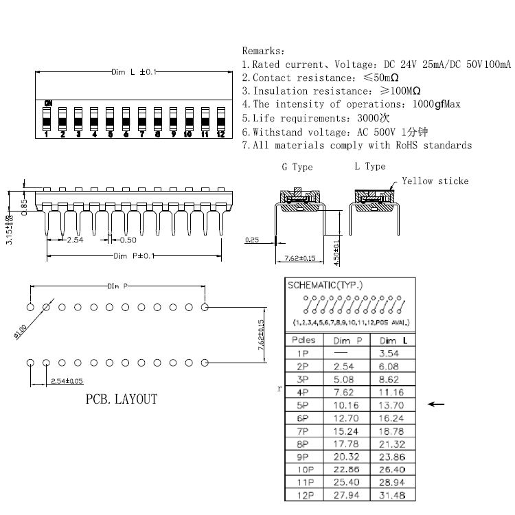 5. 回流焊: 250°CMAX 6. 耐壓:AC500V 1分鐘