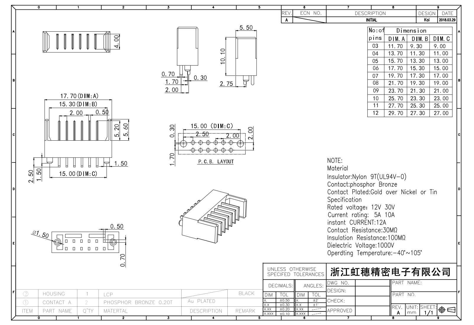 絕緣主體:Nylon 6T/9T(UL94V-0)