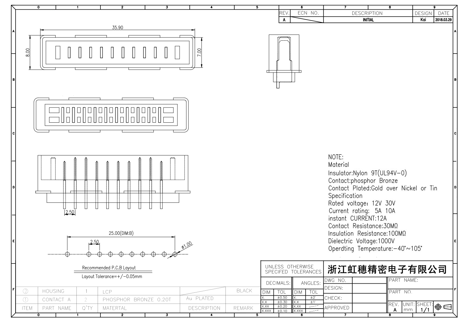 絕緣主體:Nylon 6T/9T(UL94V-0)