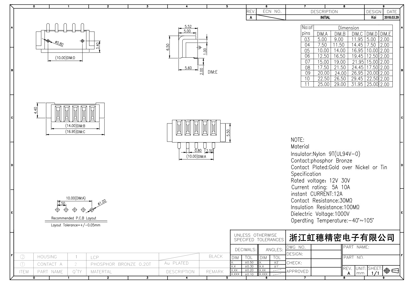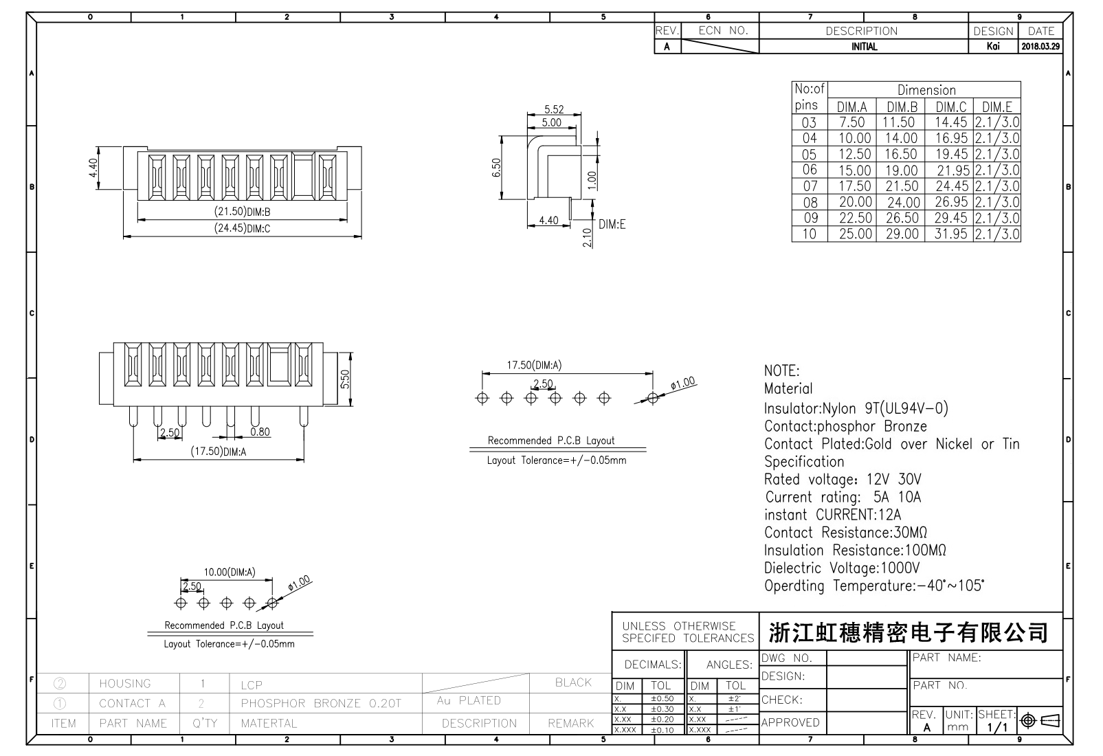 表面鍍層:金在鎳/錫之上,鍍層厚度3U
