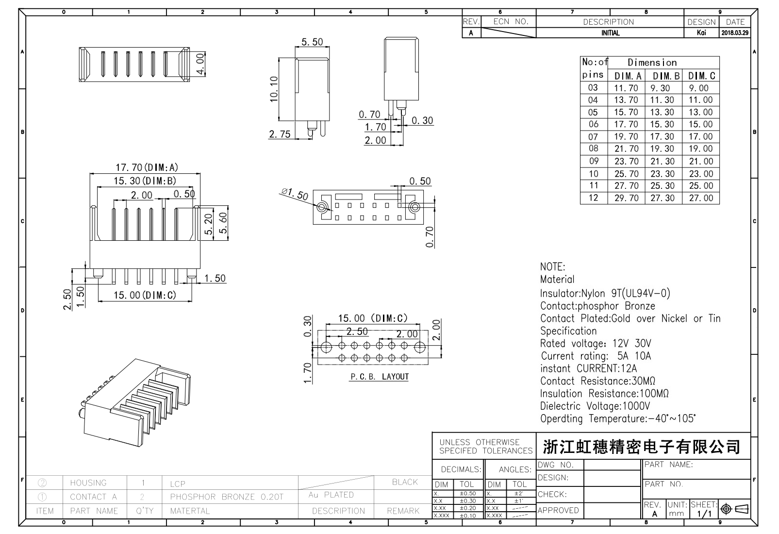 表面鍍層:金在鎳/錫之上,鍍層厚度3U