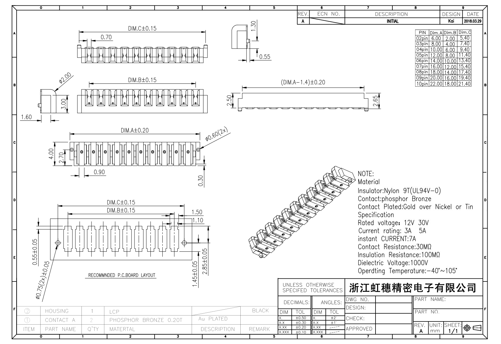 表面鍍層:金在鎳/錫之上,鍍層厚度3U