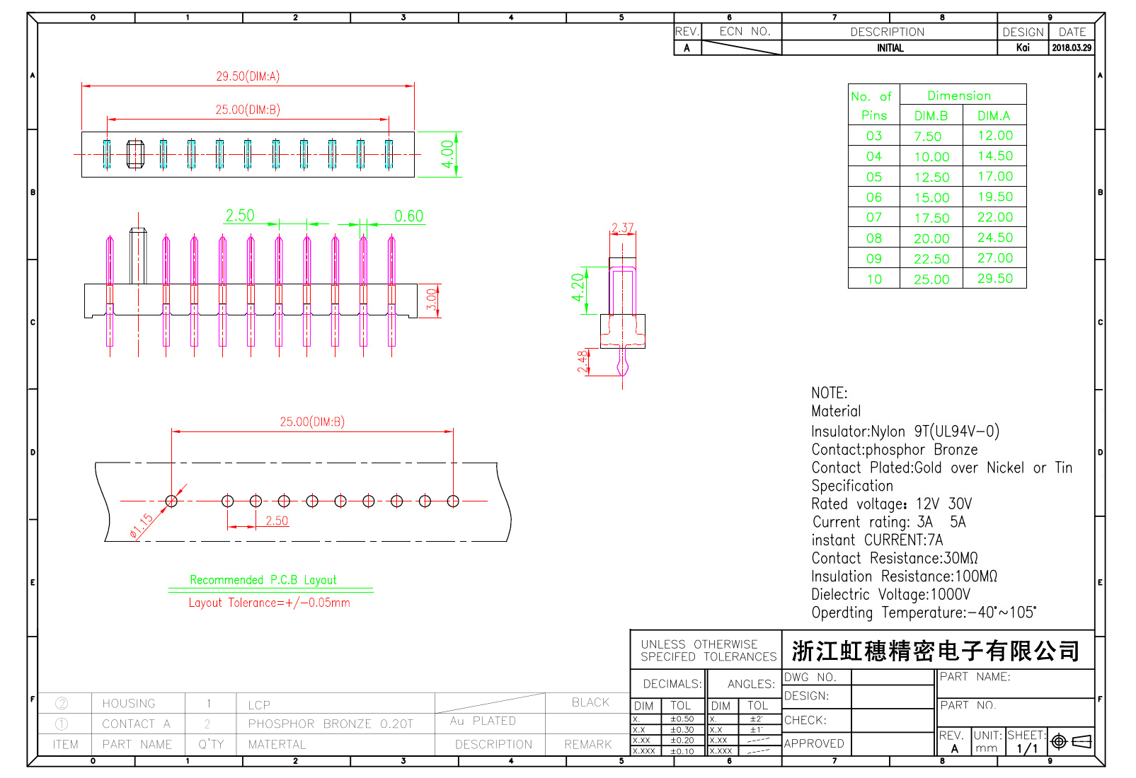表面鍍層:金在鎳/錫之上,鍍層厚度3U