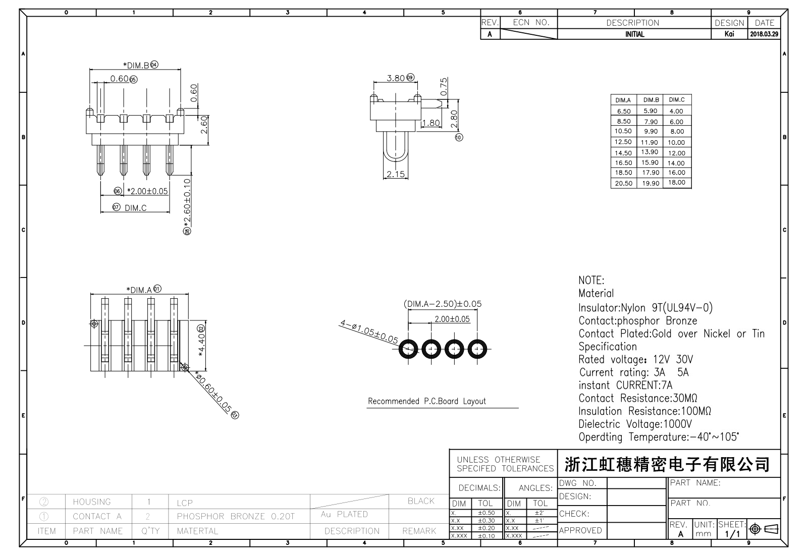 表面鍍層:金在鎳/錫之上,鍍層厚度3U
